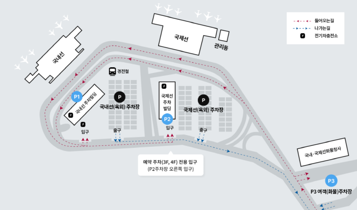 만차 시에는 P1, P2 여객 주차장을 이용해 주시기를 부탁드립니다.