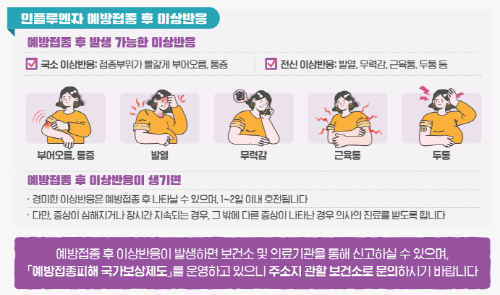 그러나 다른 모든 백신과 마찬가지로, 독감 백신도 접종 후 몇 가지 부작용이 나타날 수 있습니다.