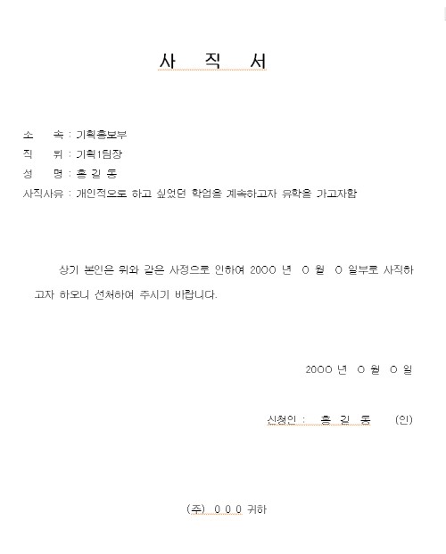 사직의 이유: 간단하고 명확하게 사직 이유를 밝힙니다.