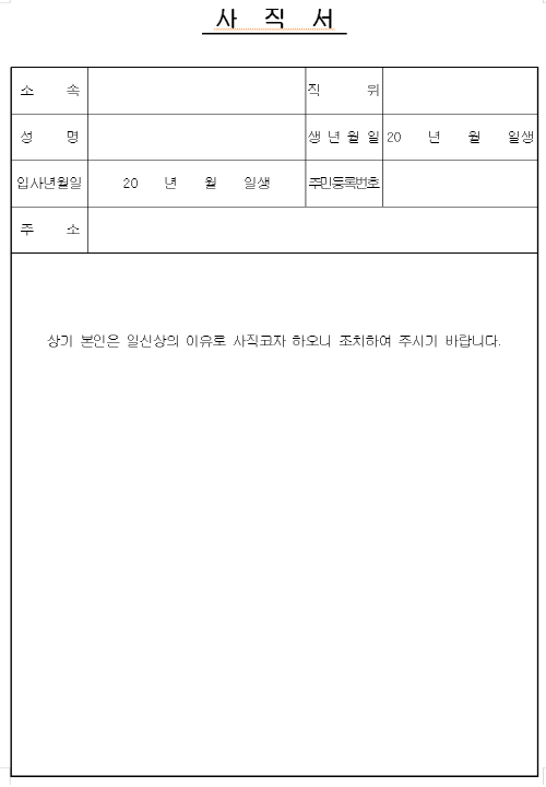 아래에서 다양한 사직서양식 무료 다운로드 하실 수 있습니다.