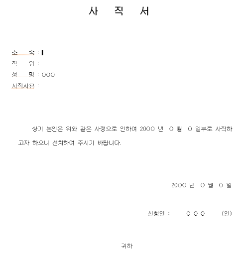 사직서를 낼때도 양식에 맞춰서 문서를 작성해서 사직서를 내야 합니다.