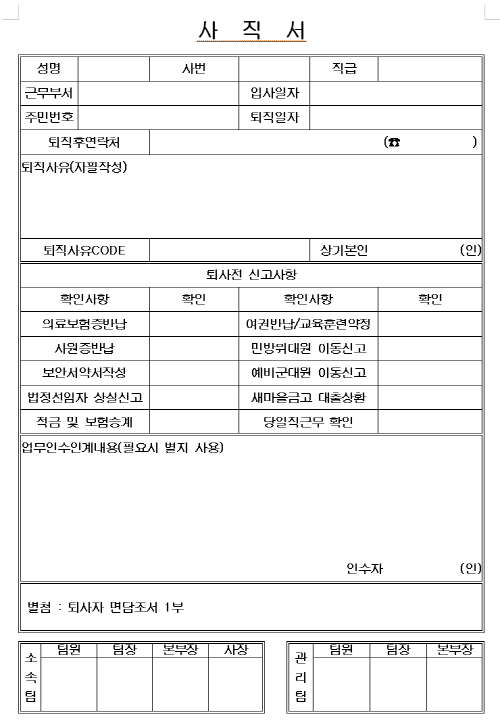 더 많은 사직서 양식 무료다운을 원하시면 아래에서 보실 수 있습니다.