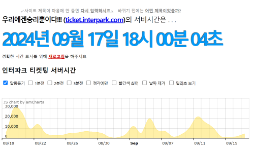 인터파크 티켓을 예매할 때는 인터파크 티켓팅 시계를 활용하는 것이 좋습니다. 서버시간뿐만 아니라 여러 유용한 정보를 확인할 수 있습니다.